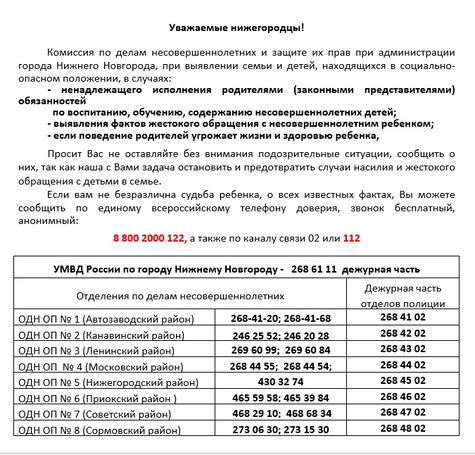 "Телефон доверия" ГУ МВД России по Нижегородской области 8 (831) 268-68-68